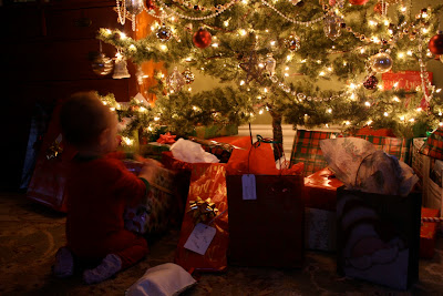 My Grandparents gave Andrew his very own person toy radio flyer wagon for a christmas gift, and it was a hit! He was all smiles as he opened it up and began to play. There were a few books with the wagon, and he decided to put those in and then dump them out...over and over and over again. Silly boy. We did actually sit him in the wagon and he let us pull him around the kitchen for a bit. But then he started to cry, which we have no idea why! So, it looks like he will just be fillin' the wagon with toys for now :) Someday we will look back and wonder how he was ever so small to fit his bum bum into that wagon....